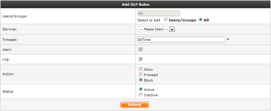 ● Users/Group: Select Users/Group radio button, to add users or group for DLP scanning or Select ALL radio button, to enable DLP scanning for the entire network.