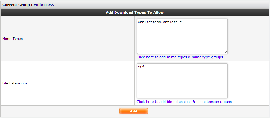 You can add as well as edit the file extensions and mime types that needs to be allowed for this group.