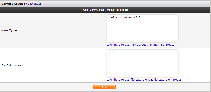 You can add as well as edit the file extensions and mime types that needs to be blocked for this group.
