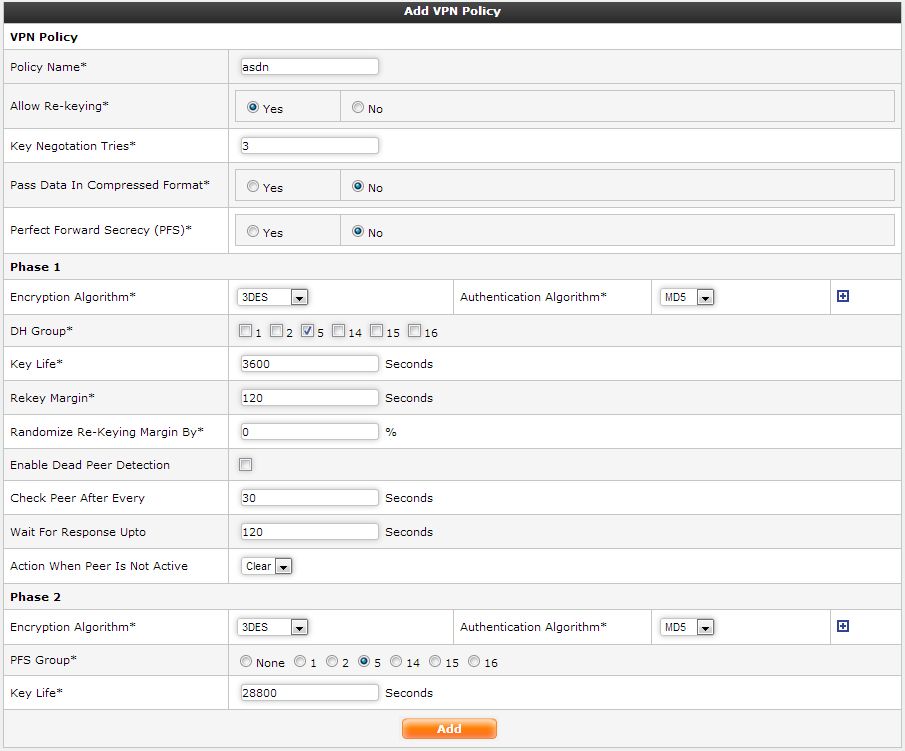 Settings of phase 2 is similar to that of phase 1, the only difference being PFS Group which are again Diffie-Hellman Phase 2 key exchange groups.