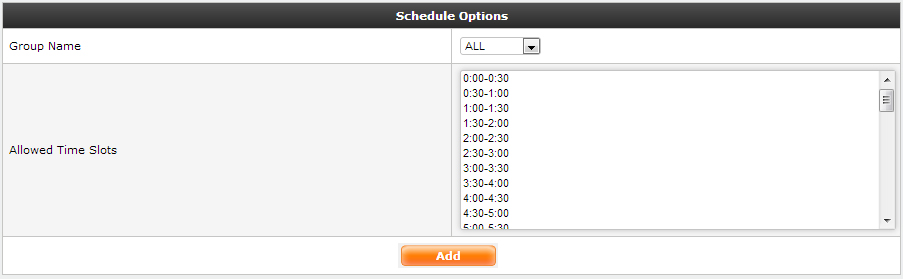 By using this option administrator can schedule the browsing timeslots for various groups. This menu show the schedule assigned for various groups.