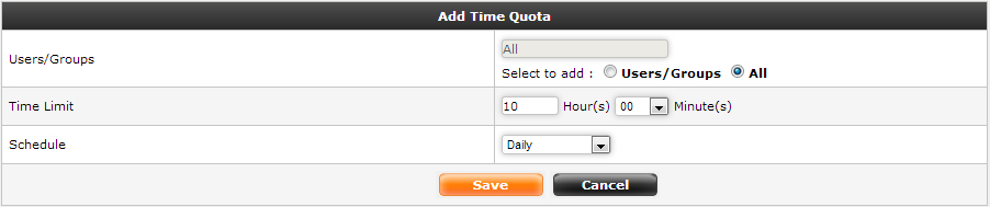 Create/Modify Time Quota using this screen.
