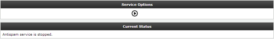 This form shows the Start/Stop/Restart Button for AntiSpam - Service.