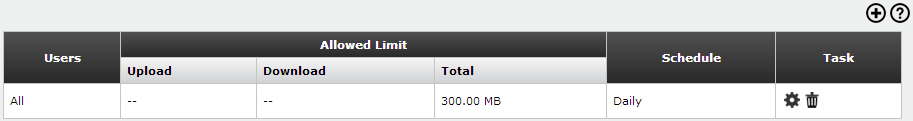 This screen shows the summary of the Bandwidth Quota on your firewall. You can add, edit or delete bandwidth quota rules using this screen.