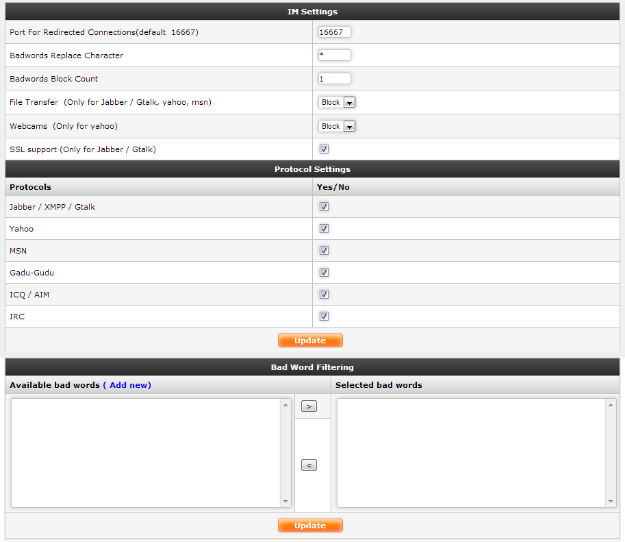 ● File Transfer (Only for Jabber / Gtalk, yahoo, msn): Control on File Transfer through IM, above mentioned IM clients supported.