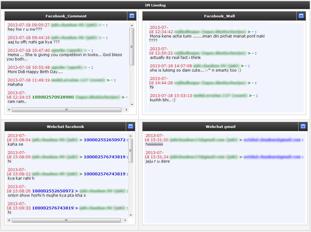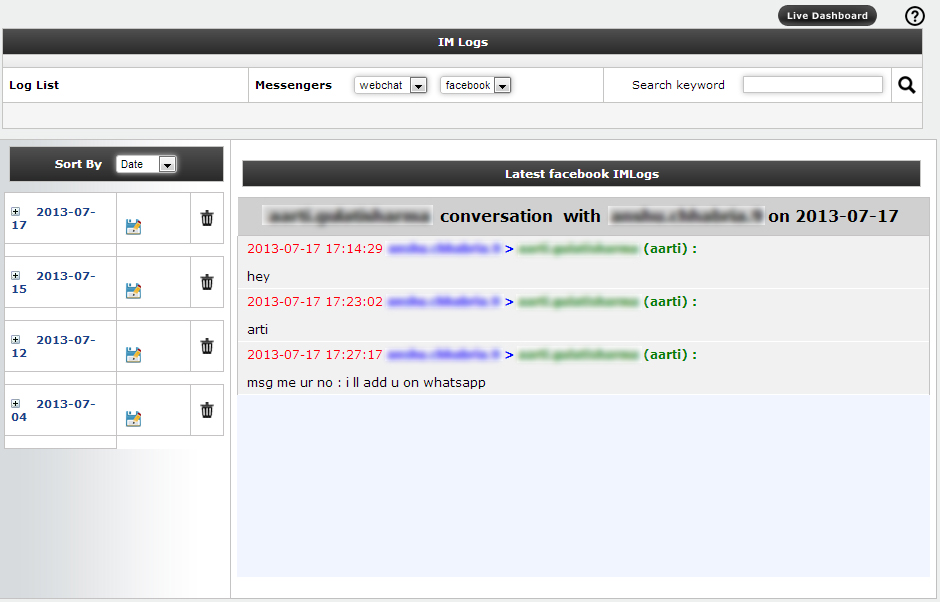 ● Messengers: When user will click on the IM Logs tab then there will be display a messenger list for display loglist and livelog to particular messengers.