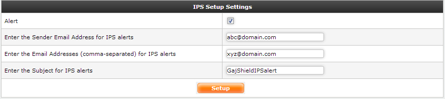 This menu allows you to set whether you wanted to be alerted incase of a intrusion being identified. It also allow you to configure the sender's email address ( for ex : ids@yourdomainname.com), recipients email address and the subject line to be given while sending the alert.