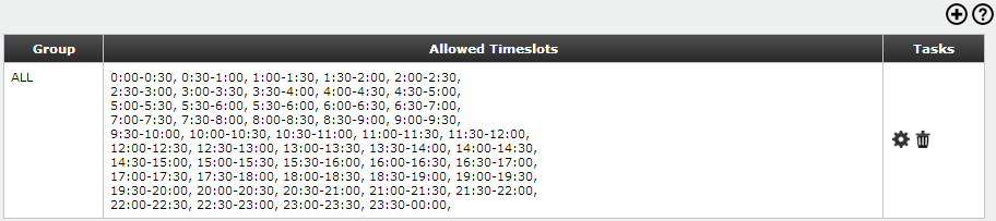 By using this option administrator can schedule the browsing timeslots for various groups. This menu show the schedule assigned for various groups.