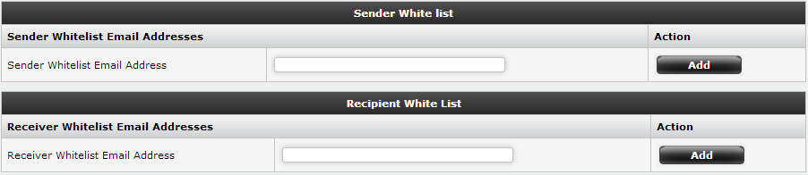 Configure Sender White listing or Recipient White listing based on domain names or email address with comma separated.