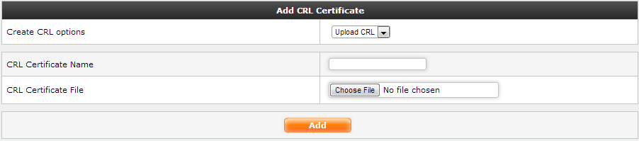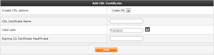 This screen helps in creating a CRL Certificatem or Uploading a CRL Certificate.