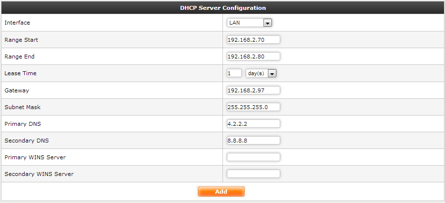 Here you can add/edit DHCP configuration.