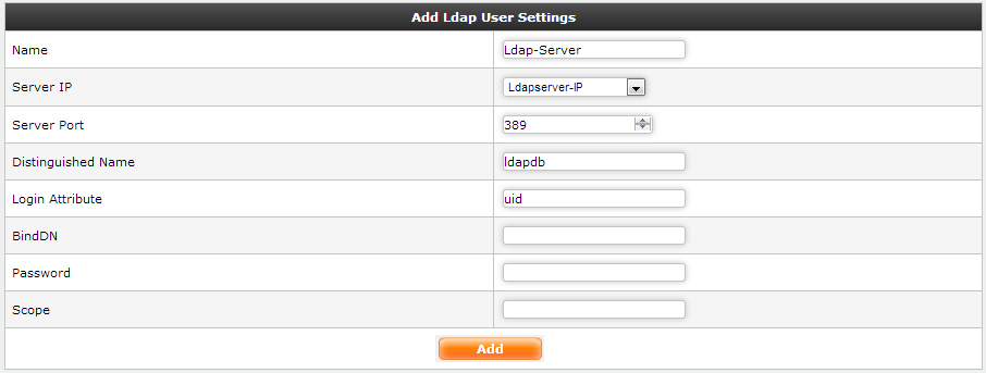 This screen allows to configure the remote LDAP server that needs to be used for authentication by adding the following