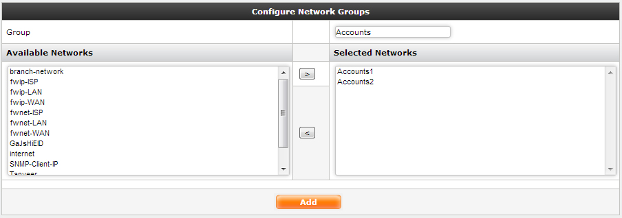 Provide a group name for easy reference and add the relevant host/networks to be grouped together.