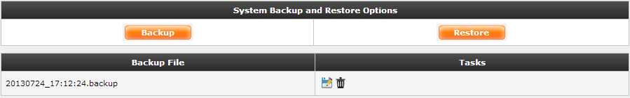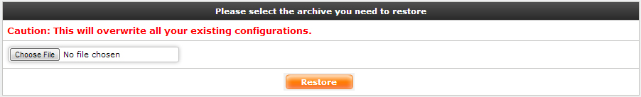 Take up complete back of the Firewall system and restore them. To download a new backup, click on 'Backup' which would create a back of today in the form yyyymmdd. backup which can be downloaded to a remote machine. To import a previously taken backup choose the corresponding backup file by clicking 'Browse' and then click 'Restore'.