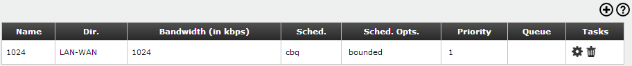 The Bandwidth Management is used to manage the Traffic sub-system rule wise, including setting the traffic scheme and setting the external connection speeds. Bandwidth Management can also be set in a Hierarchical manner by assigning the parent queues. You can allocate fixed bandwidth for each service. This screen shows the list of Bandwidth Queues created.