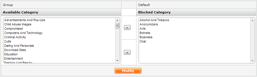You can add available categories to blocked categories by moving them from available category to block category for selected group.