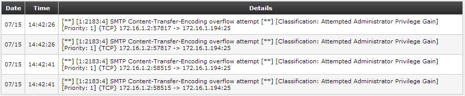 Shows the current intrusions that IPS has detected with the details of the attack. For taking the Logs remotely to another machine use the Remote Log option.