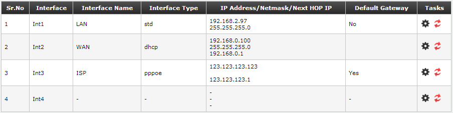 You can use this option to configure the network interfaces on the firewall. By using this option you can configure the Local LAN IP address, the External IP and also multiple DMZs, by selecting the respective interface.