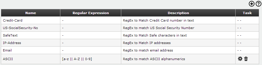 This section allows to determine the available Patterns. You can also add, edit and delete Patterns.