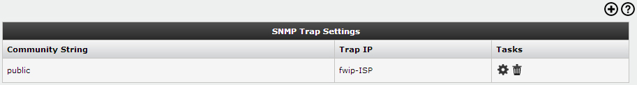 1. Add a community name in the Access Policy Tab for the firewall IP Loopback (i.e. 127.0.0.1) and enable it. 2. Open port 162 for traffic from firewall IP to the logging IP in the Rules |