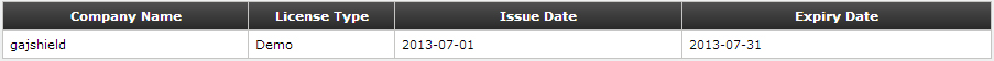 This menu displays information table will an overview of the license parameters about your license after the license has been applied.