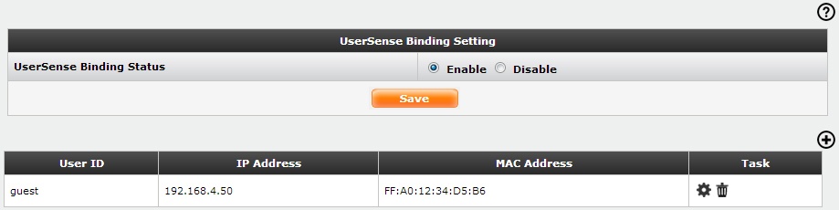 You can configure userSense binding settings which could be used to bind userSense users with either IP address or MAC address or both, so that the users can only login from a particular IP address or MAC address or both.